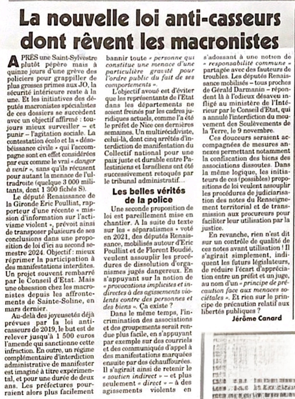 “assouplir les procédures de judiciarisation des notes du renseignement territorial”