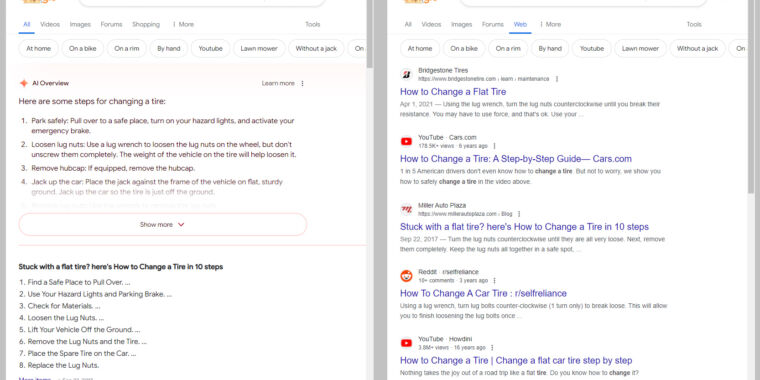 I feel like Google is trying to speedrun killing their search service. It was already significantly shittier lately just because of all the sponsored bullshit and SEO spam, but this rush to cash in on the AI fad has really destroyed the last utility it had.
