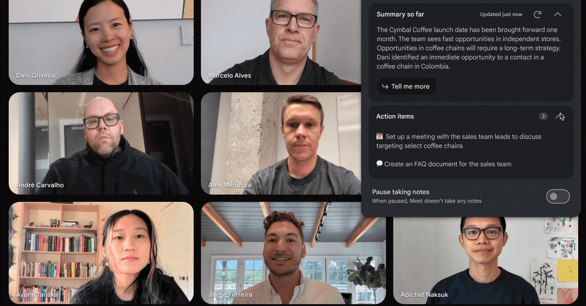 Another new Meet feature lets Duet “attend” a meeting on your behalf. On a meeting invite, you can click an “attend for me” button, and Google can auto-generate some text about what you might want to discuss. Those notes will be viewable to attendees during the meeting so that they can discuss them.