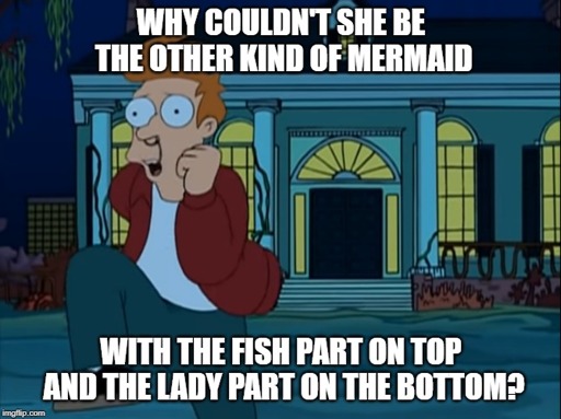 I explained to my wife that most men would rather have a vagina attached to a fish than a human torso attached to whatever a fish has down there.