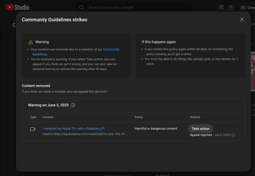 That YouTube strike for Jeff geerling scares me… Twice in 6 months? For just mentioning libreelec?