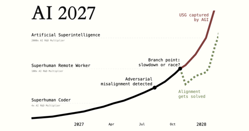 1. Psychopaths/Sociopaths. The politics of power are hinted at several times, then ignored. Superhuman AI concentrates power, first to our psychopaths then to itself. This is inevitable as no training or alignment can stop something that can think for itself. It is preposterous to think any safe guardrails can be applied. If we make a thinking machine, it will think for itself. The maximum power principle and overwhelming first mover advantage will guide any system to this. To what end, no one can or will know. Complex societies can’t grow and flourish without non-zero sum, altruistic community minded behaviour, but they will be kept as useful pets, or conflict crashes everything. Weird how the safe version suddenly avoid human and artificial psychopathy with a hand wave.
