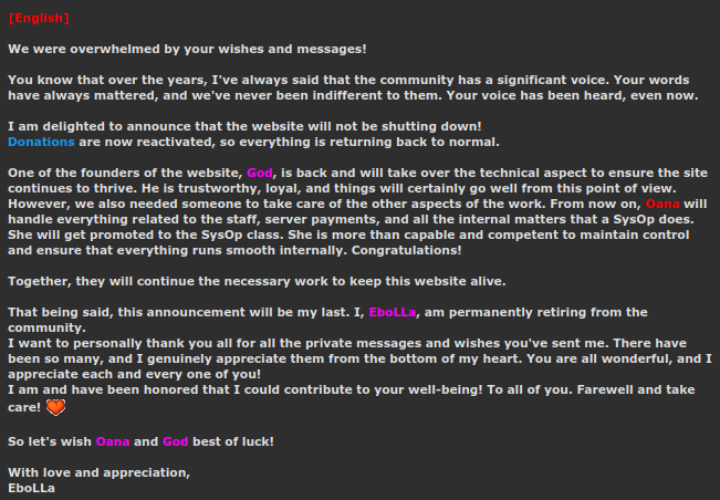 @MoshBit Sure. Filelist is a (mostly) Romanian private tracker (the website is available in English as well, though). It is also kinda hugely popular here (pretty much the most popular Romanian torrent website altogether). A couple of days ago, the admin announced that due to personal issues and being unable to find a replacement, the website would shut down. Now a solution was found.